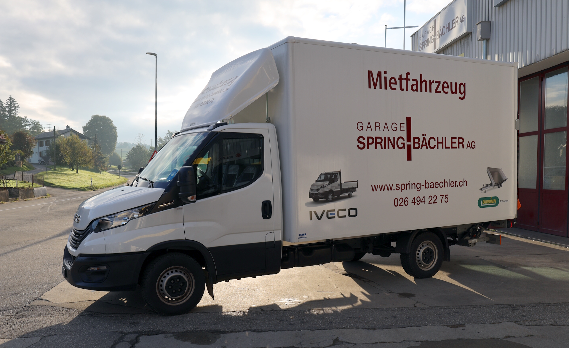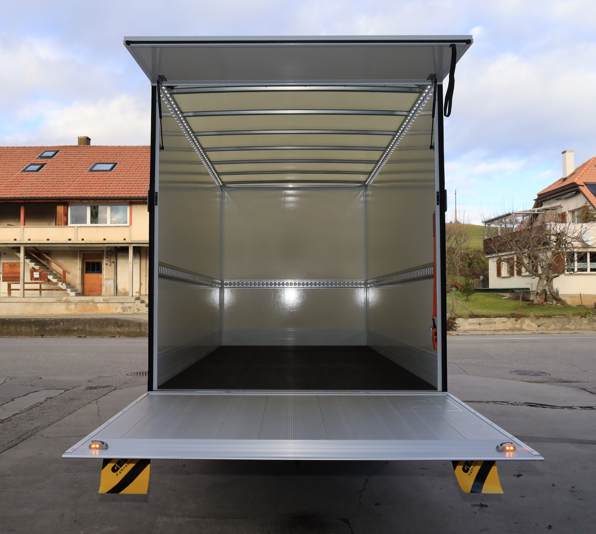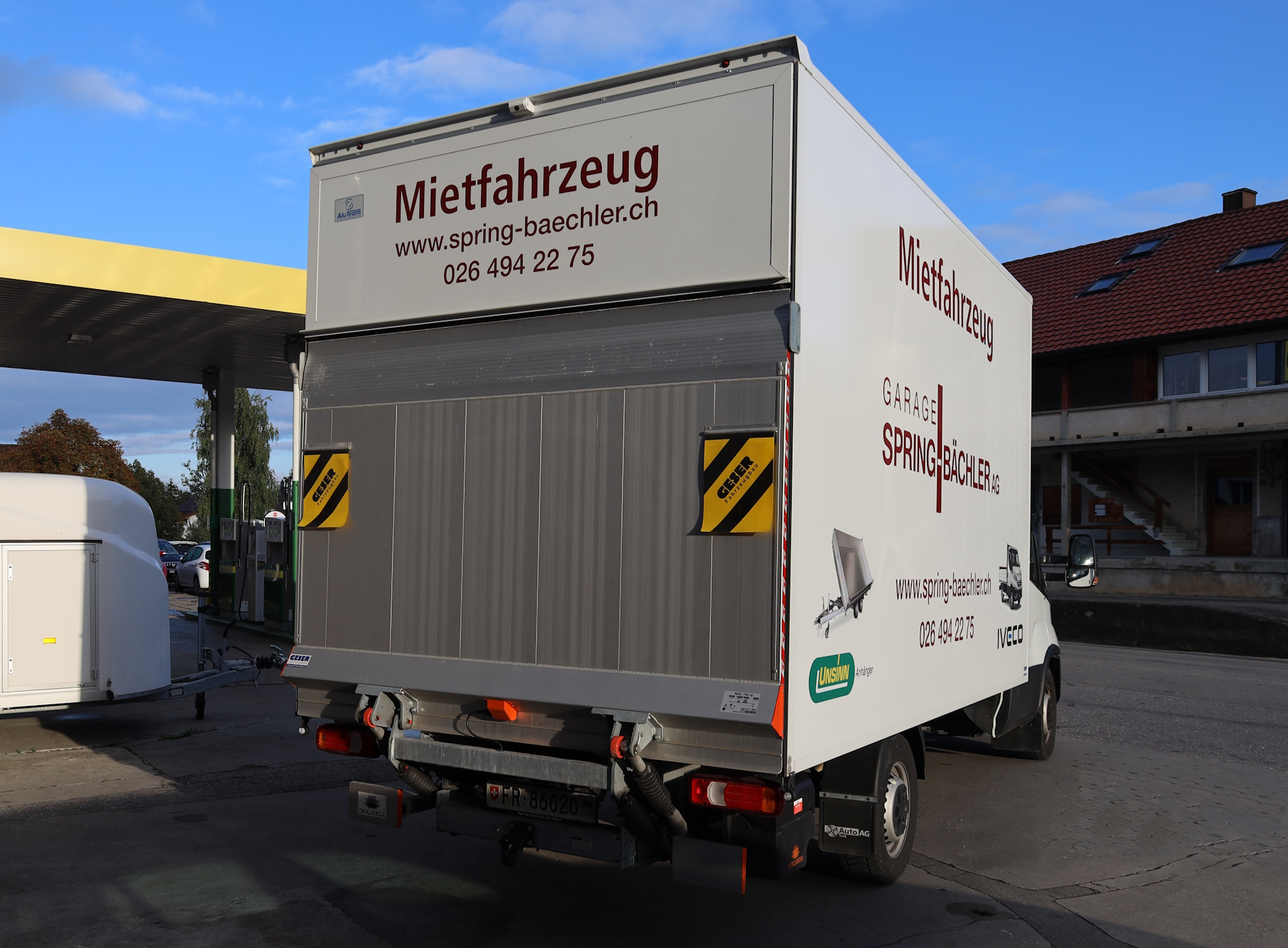 - Lieferwagen mit Kastenaufbau und Hebebühne
